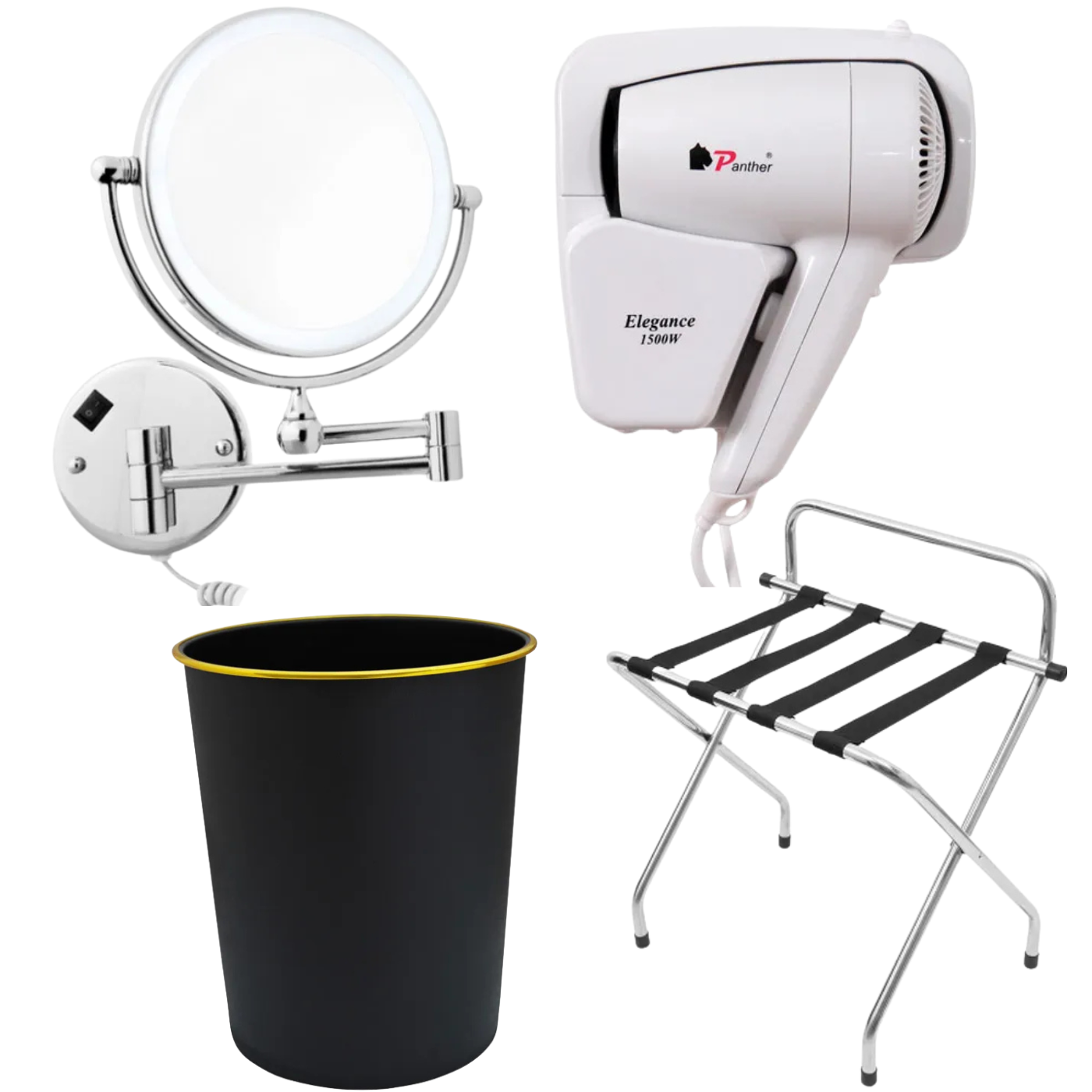 Este conjunto de produtos foi cuidadosamente selecionado para oferecer mais organização, elegância e praticidade ao seu ambiente. Ideal para uso residencial, hotéis, pousadas ou espaços corporativos, o kit combina durabilidade, estilo e funcionalidade em soluções modernas e eficientes.