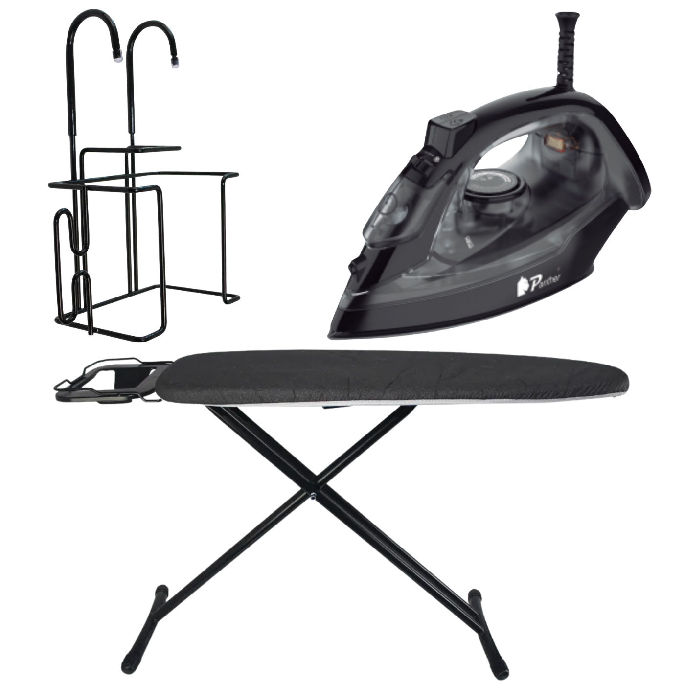 Ofereça mais eficiência, segurança e organização no cuidado com roupas com este kit completo, pensado especialmente para ambientes hoteleiros, mas perfeito também para uso doméstico. O conjunto é composto pelo ferro de passar Panther PTH5000, uma tábua com estrutura reforçada e regulagem de altura, e suporte de parede para otimização do espaço.