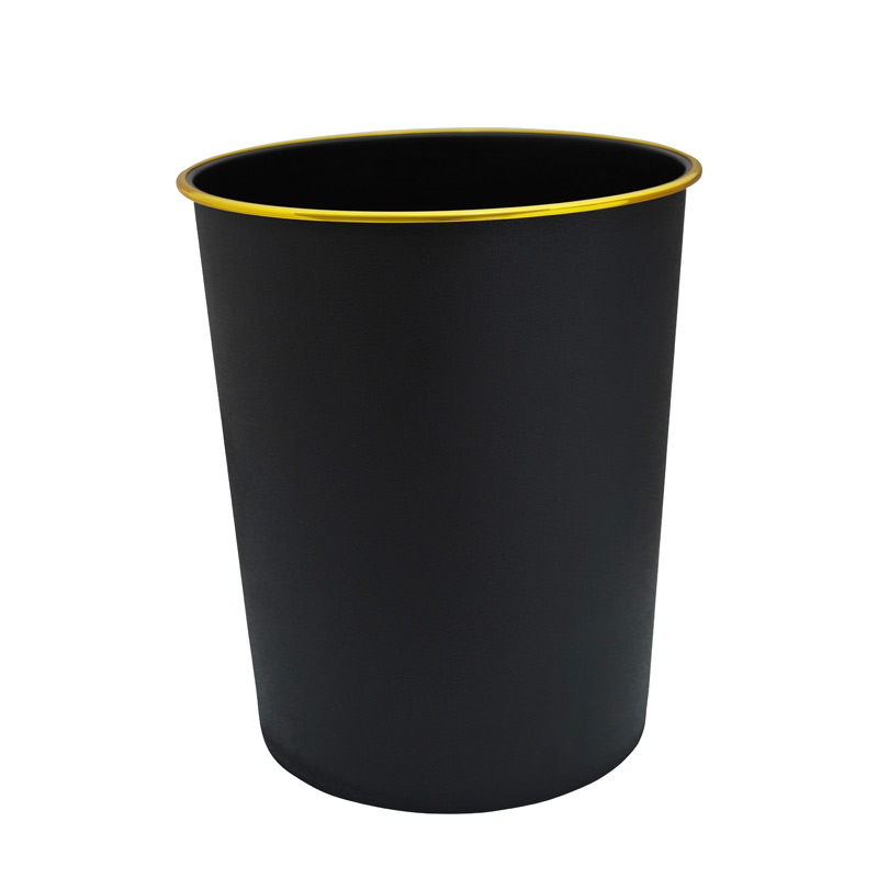 Lixeira de plástico preta com detalhe dourado, ideal para ambientes sofisticados e funcionais. Com capacidade de 10 litros, este produto combina praticidade e elegância em seu design.
