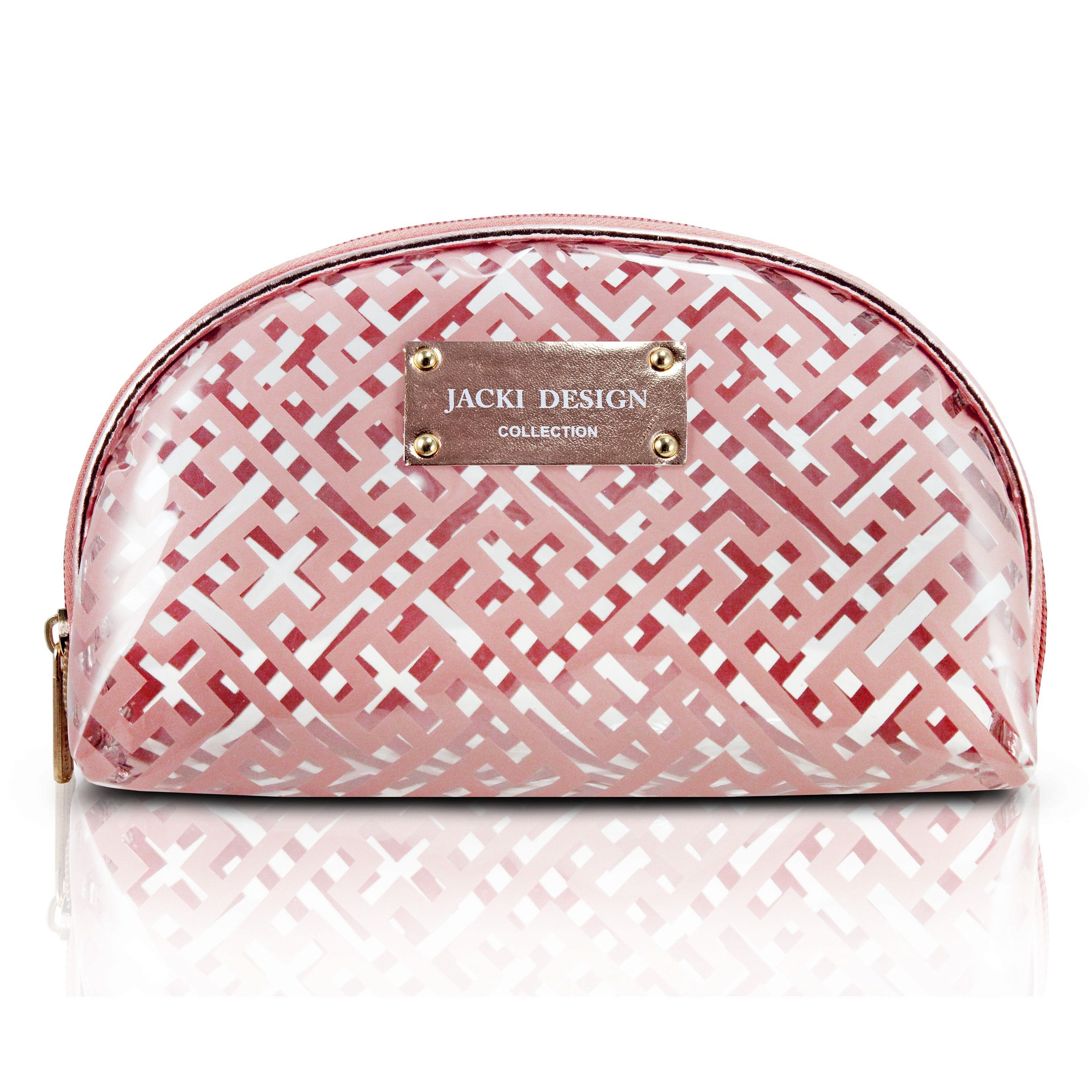 A necessaire meia-lua transparente, possui uma linda estampa metalizada, tag da marca e fecho em zíper. Perfeita para o dia a dia!