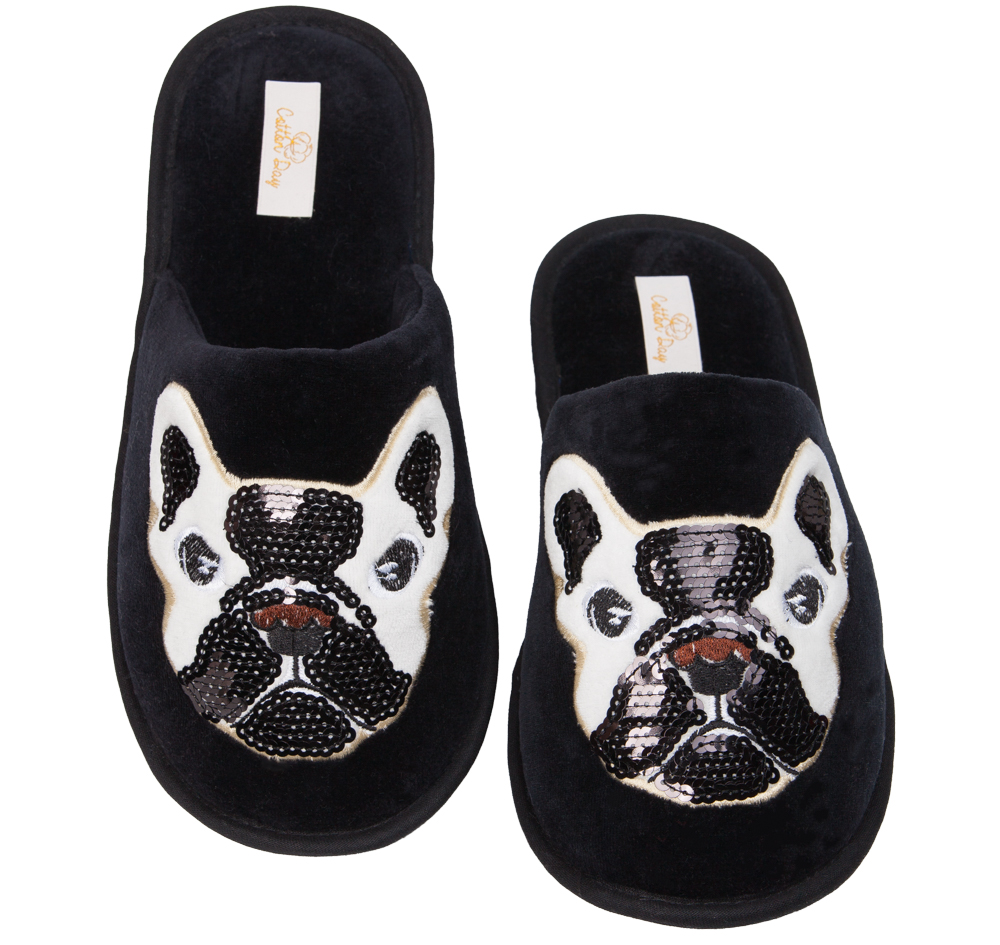 Pantufa Chinelo Adulto Bulldog Com Lantejoula Cotton Day